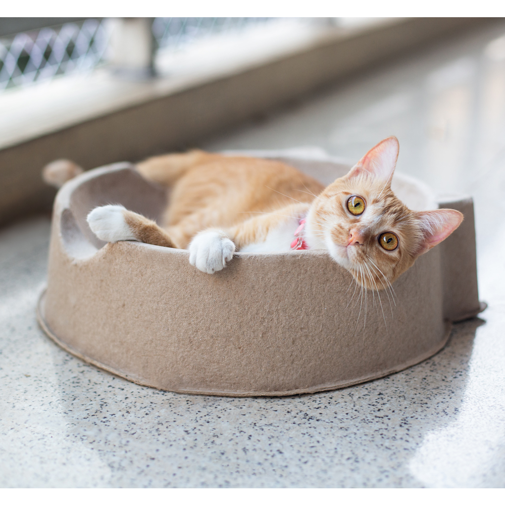 Produzida em papelão moldado, o material que fascina naturalmente os gatos, a Cat Place tem uma construção durável (não é descartável) que acomodará o seu gatinho durante muito tempo.